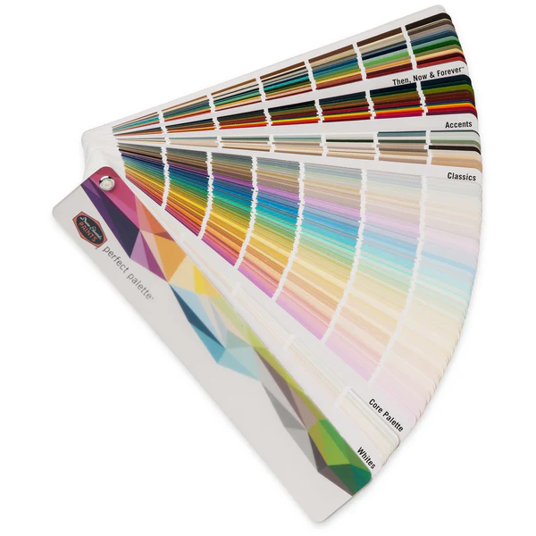 -1400 основных цветов, 10 оттенков белого, 100 белых, 100 классических (наши самые популярные цвета), 96 акцентов и 300 цветовых коллекций Then, Now&Forever ®.